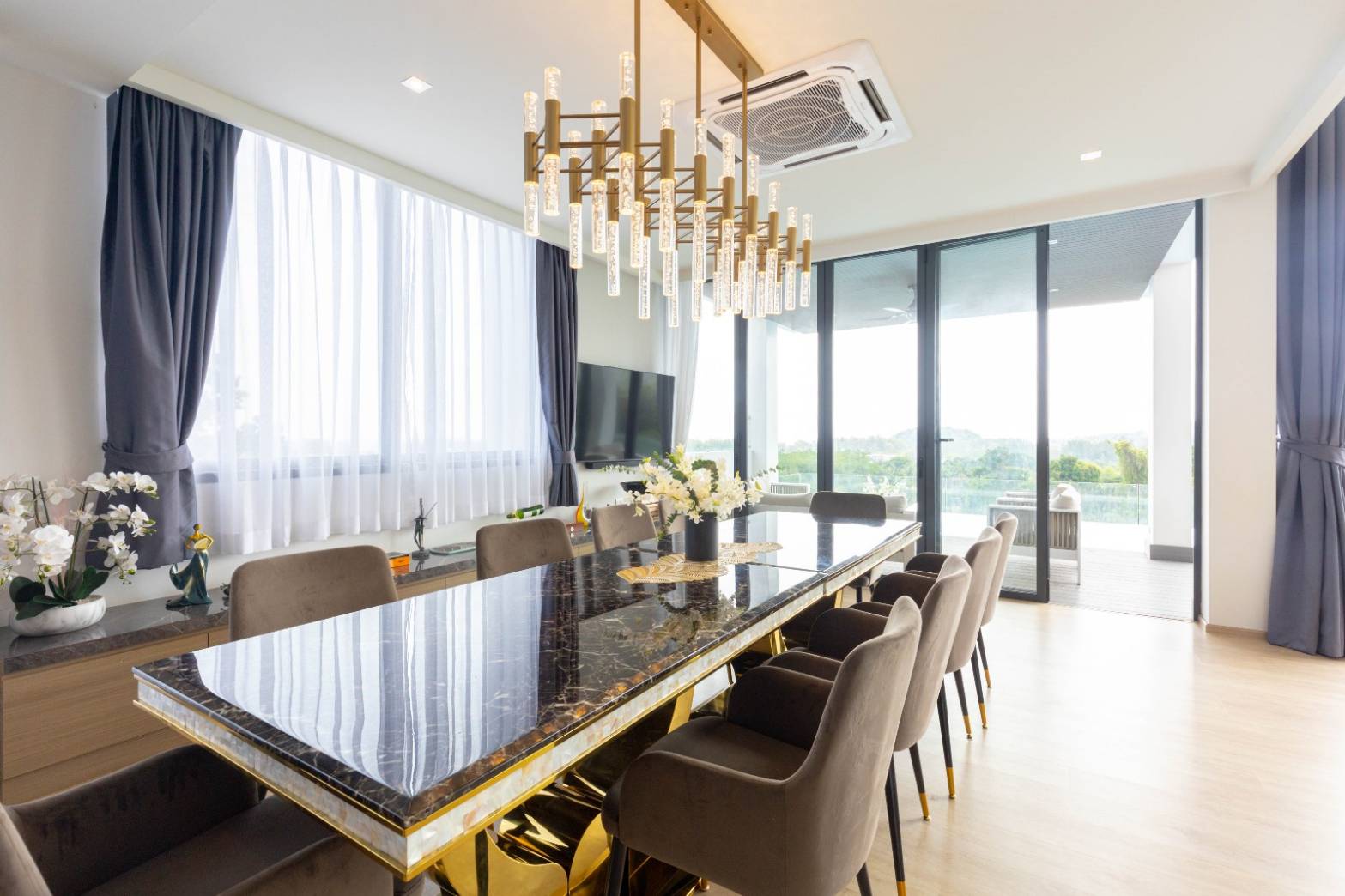 This 6-bedroom sea view modern tropical pool villa for sale near Layan Beach in Phuket is a subtle fusion of excellent design, elegance, and luxury. Elevator access is available in this fully furnished property, which has a large built-up area of 974 sqm over 3 levels. An elevator in a home is the ideal solution for persons who have health issues, impairments, are worried about aging in place, or who simply want the convenience.