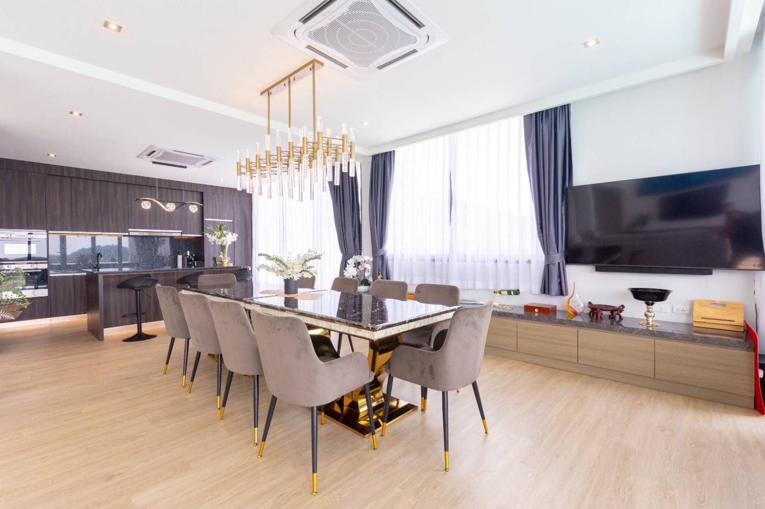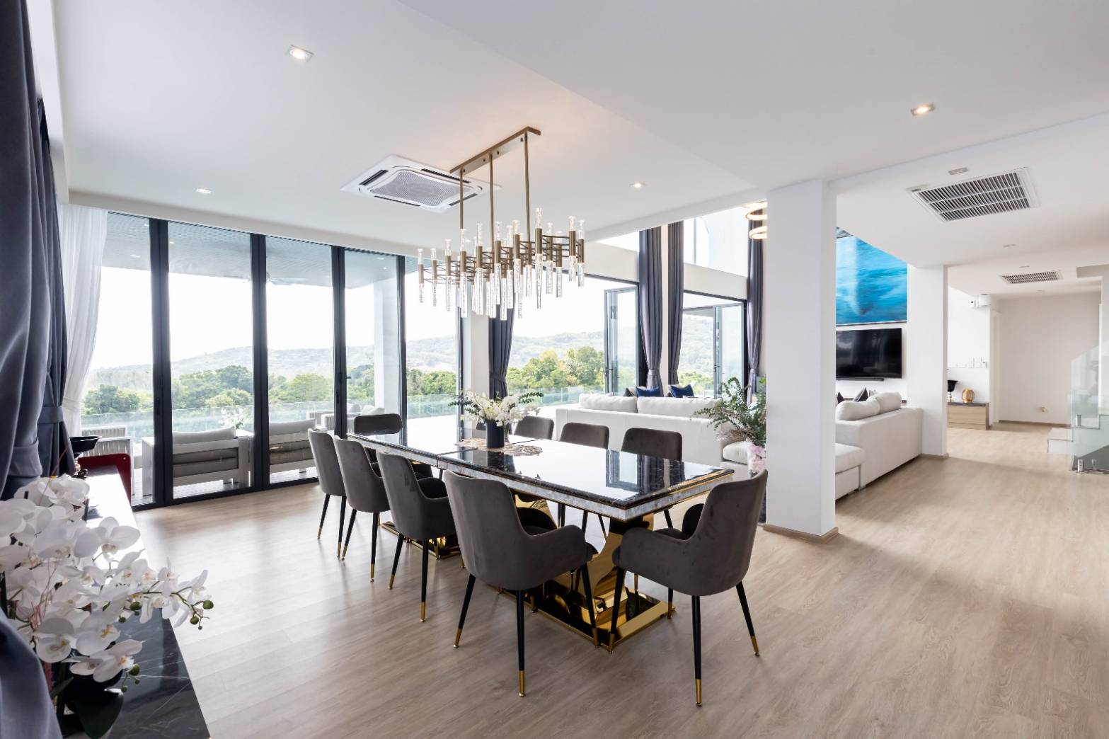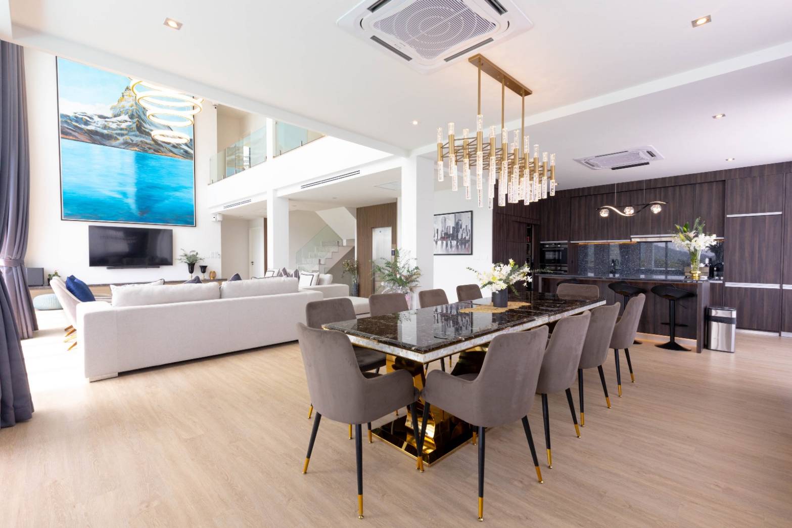 There are six luxurious villas up for sale, each with a big built-up area ranging from 586 to 974 sqm and 3, 4, 5, or 6 bedrooms. To top off a comfortable and luxurious lifestyle, each private pool villa has a living room/lounge with double height ceilings, roomy outside living, a 12- to 20-meter private pool with a chic jacuzzi, planted garden, car parking space, some with sea view, and a lift.